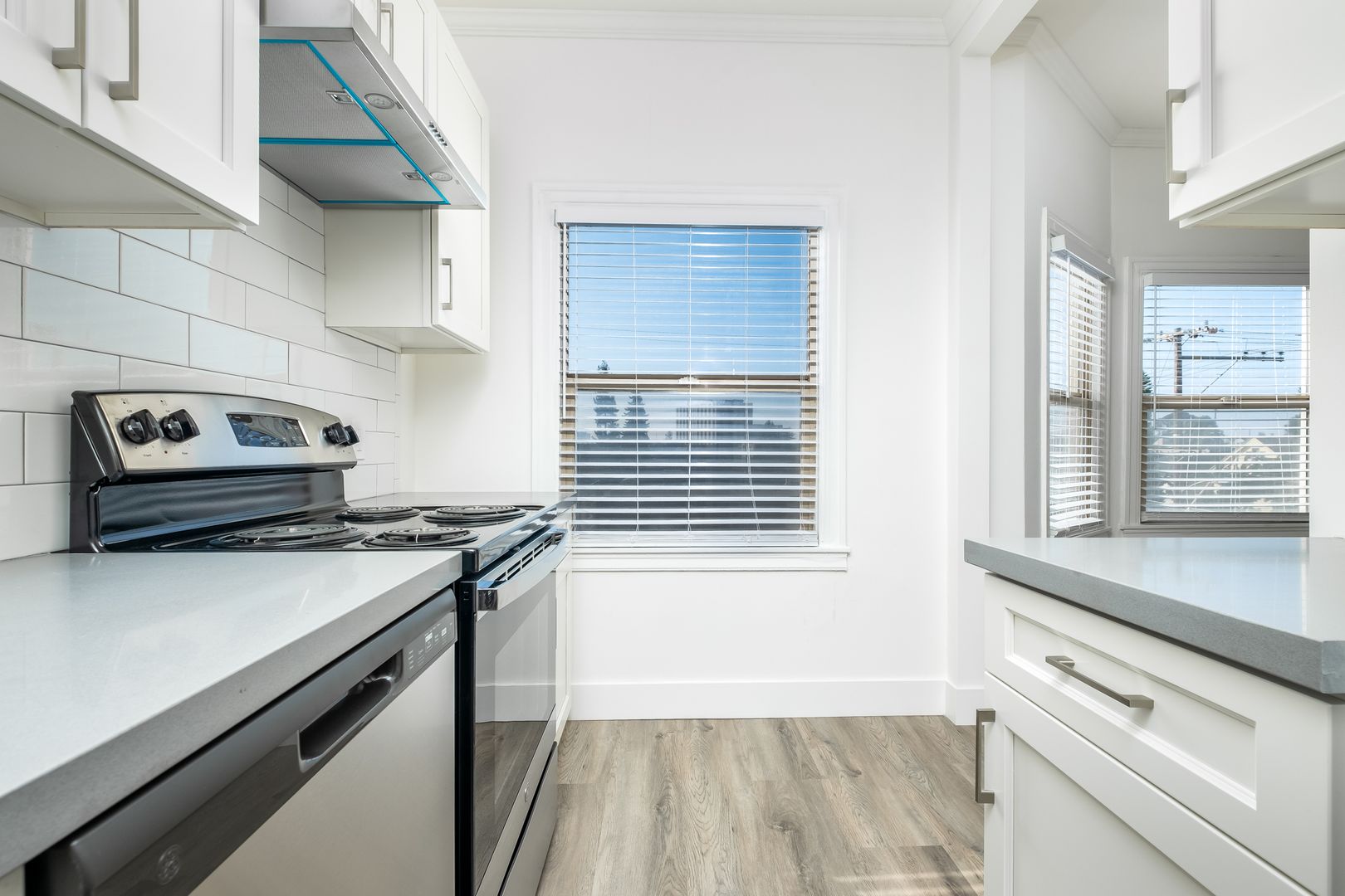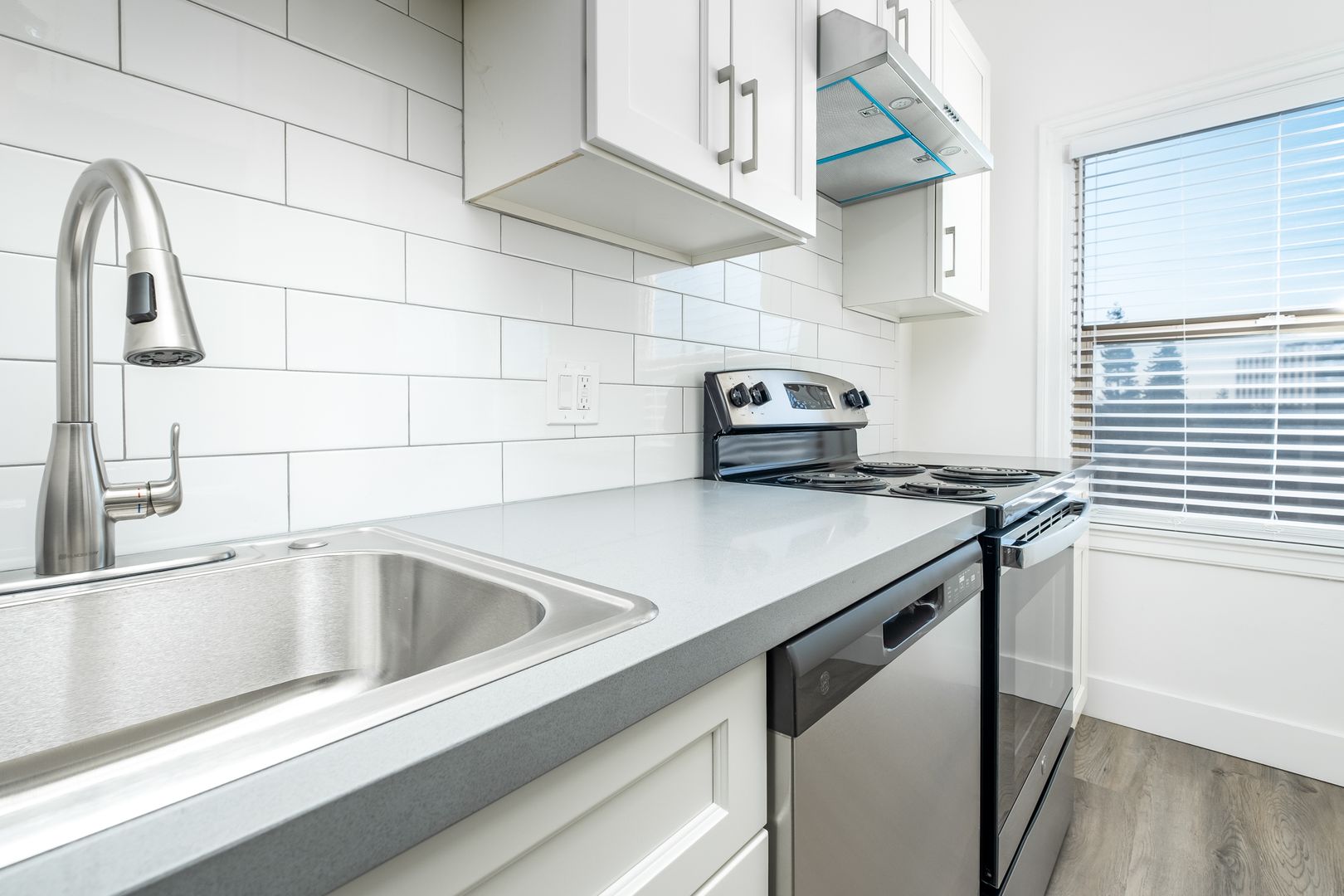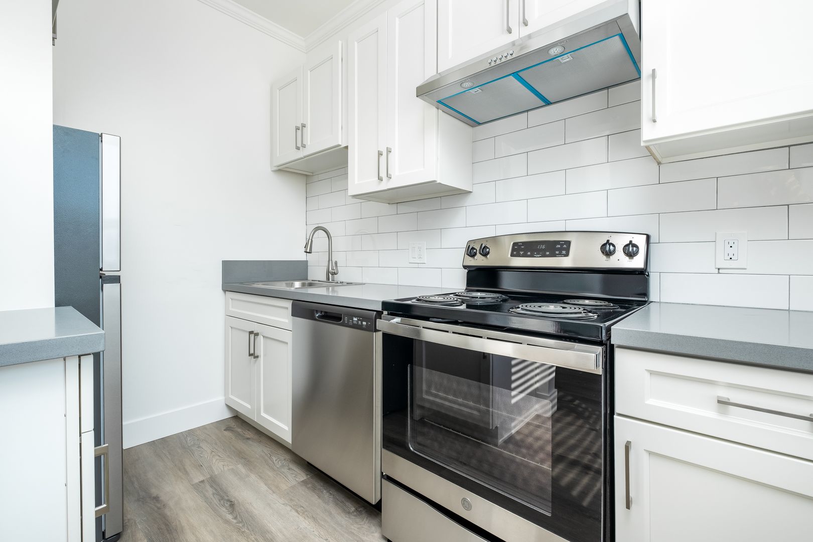 - Re-imagined kitchen layout w/new cabinets, quartz counter tops, subway tile backsplash, and new stainless steel appliances, including a dishwasher, electric stove, and refrigerator