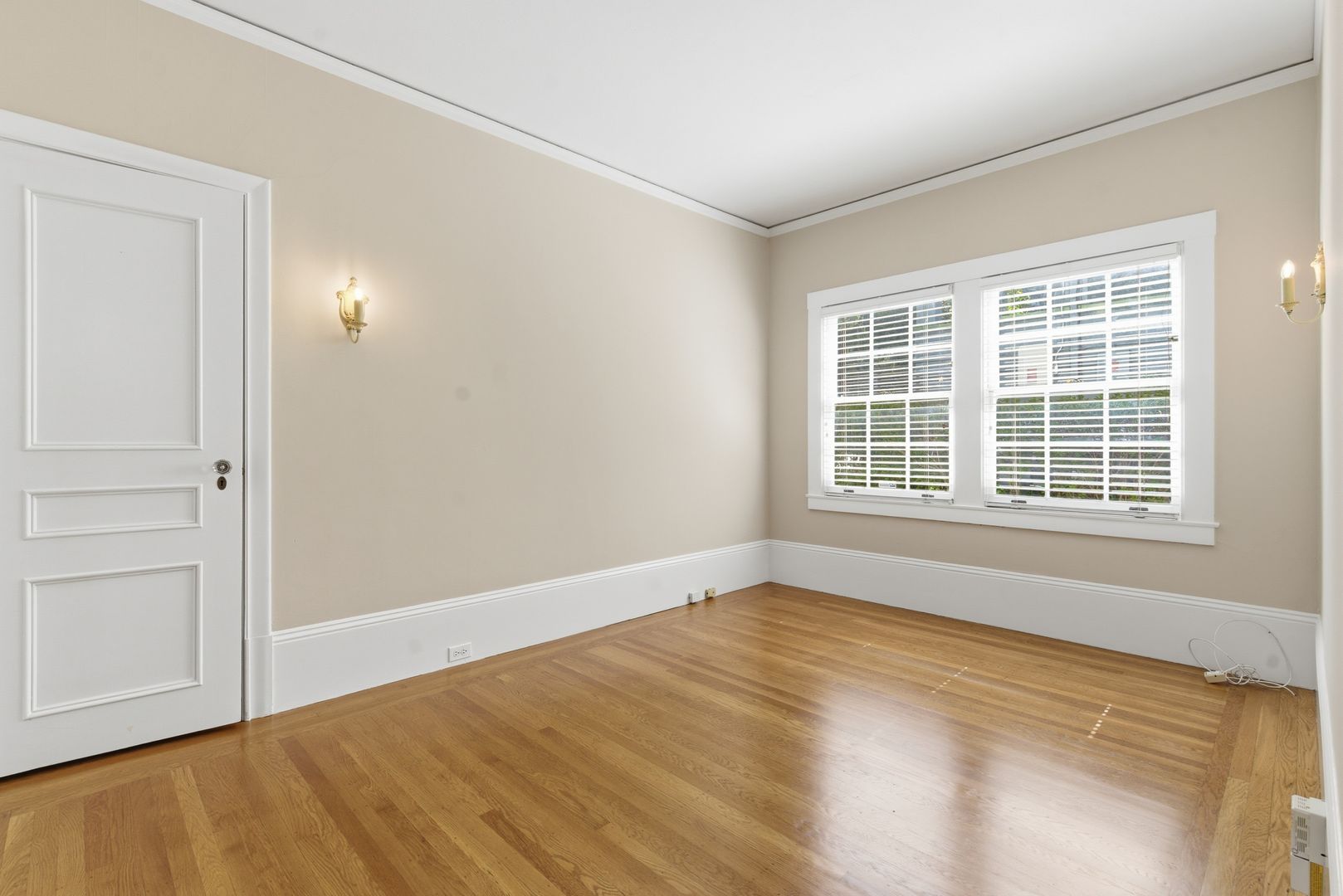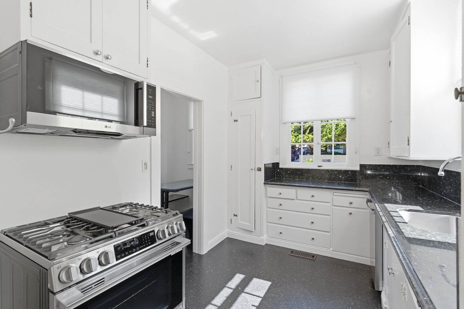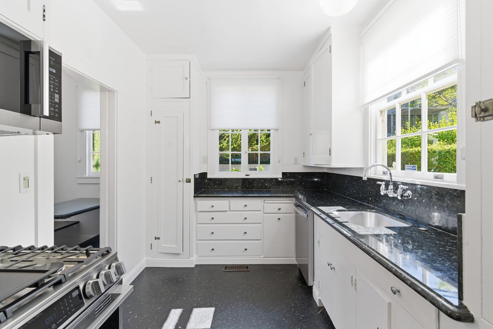 Step inside to discover soaring high ceilings, rich parquet floors, and a stunning fireplace framed by elegant original moldings. Period details and original fixtures add warmth and authenticity throughout, while a formal dining room and bright sunroom off the primary bedroom—overlooking a mature landscaped garden with bi-monthly service —offer flexible living and relaxing spaces. The thoughtfully updated kitchen features granite countertops, a breakfast nook, and dishwasher, while the refreshed bathroom and two spacious walk-in closets provide everyday convenience.
