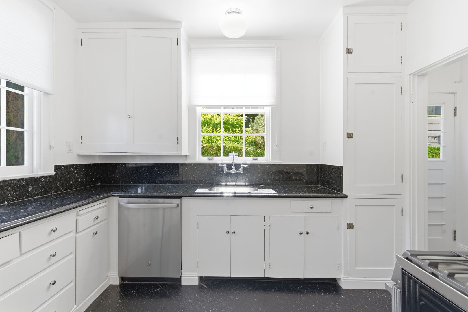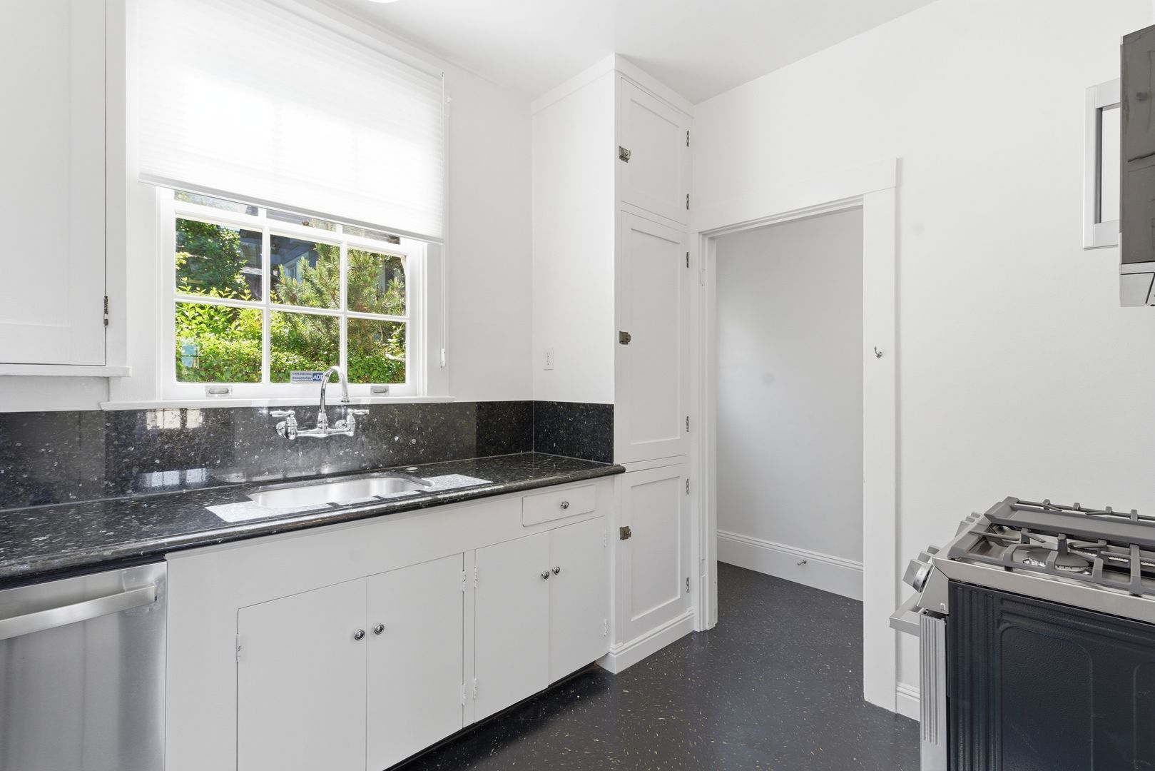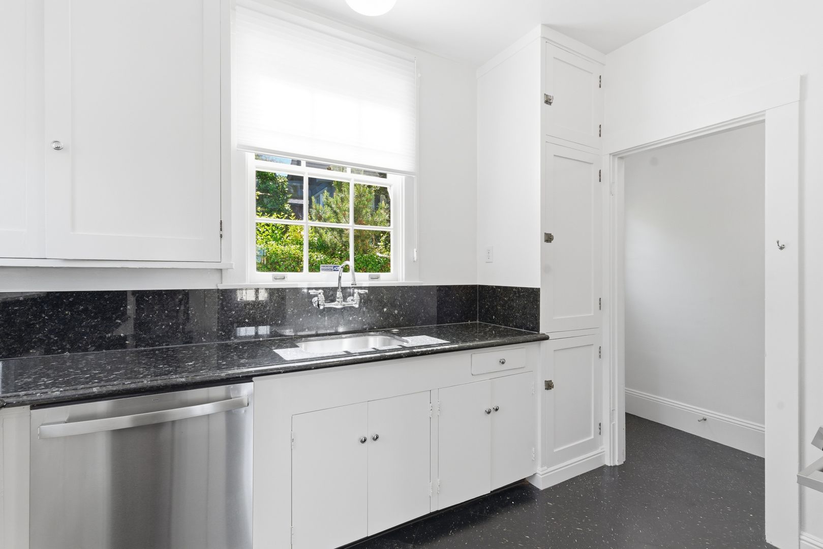 Step inside to discover soaring high ceilings, rich parquet floors, and a stunning fireplace framed by elegant original moldings. Period details and original fixtures add warmth and authenticity throughout, while a formal dining room and bright sunroom off the primary bedroom—overlooking a mature landscaped garden with bi-monthly service —offer flexible living and relaxing spaces. The thoughtfully updated kitchen features granite countertops, a breakfast nook, and dishwasher, while the refreshed bathroom and two spacious walk-in closets provide everyday convenience.