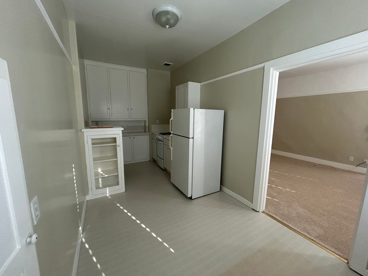- Kitchen: Ample white cabinetry, gas range, and refrigerator